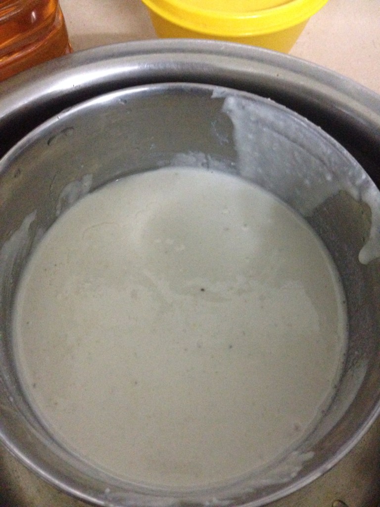 • Unlike the idli / dosa batter, this batter will not rise significantly. So don’t worry on that count.