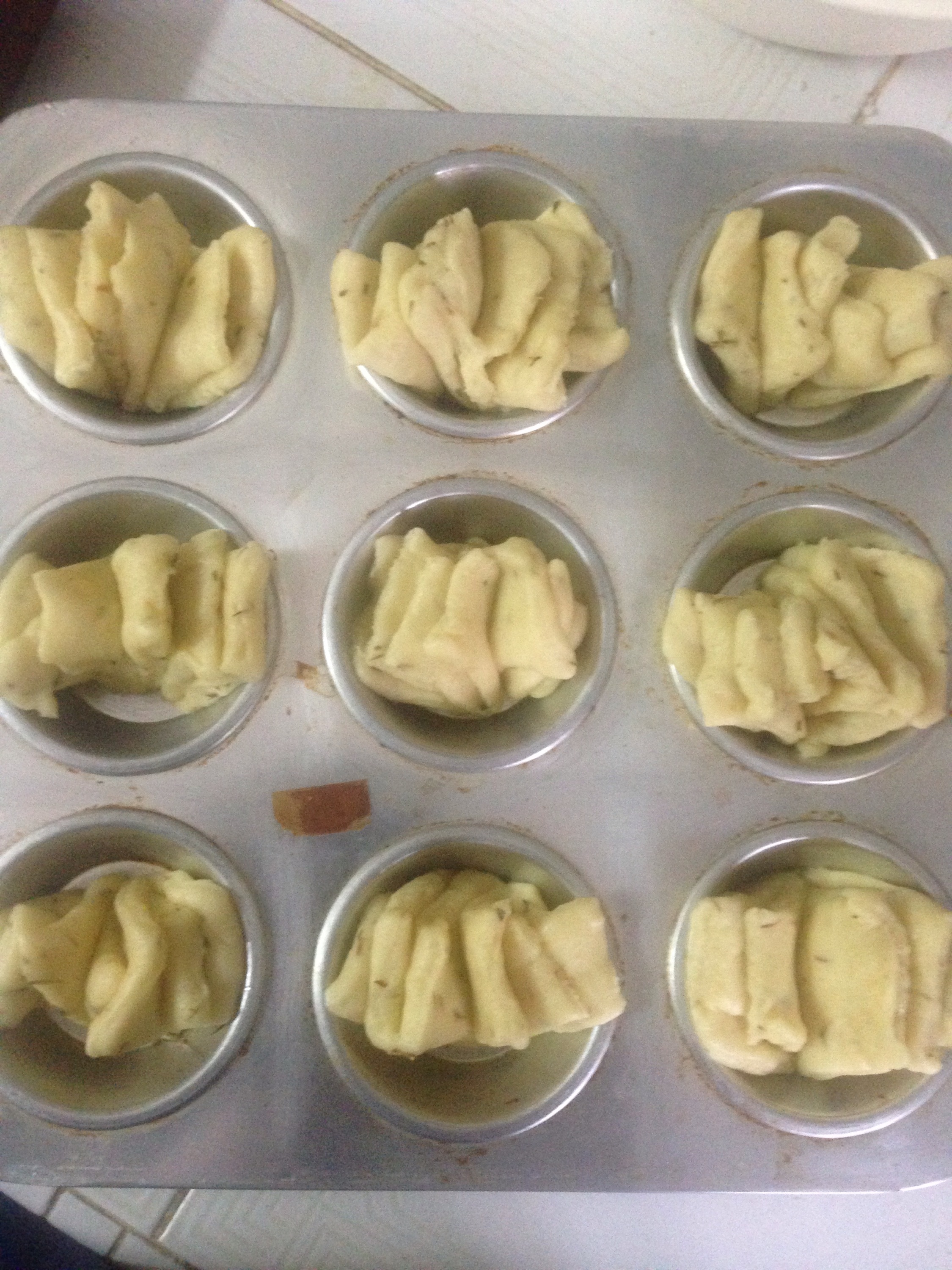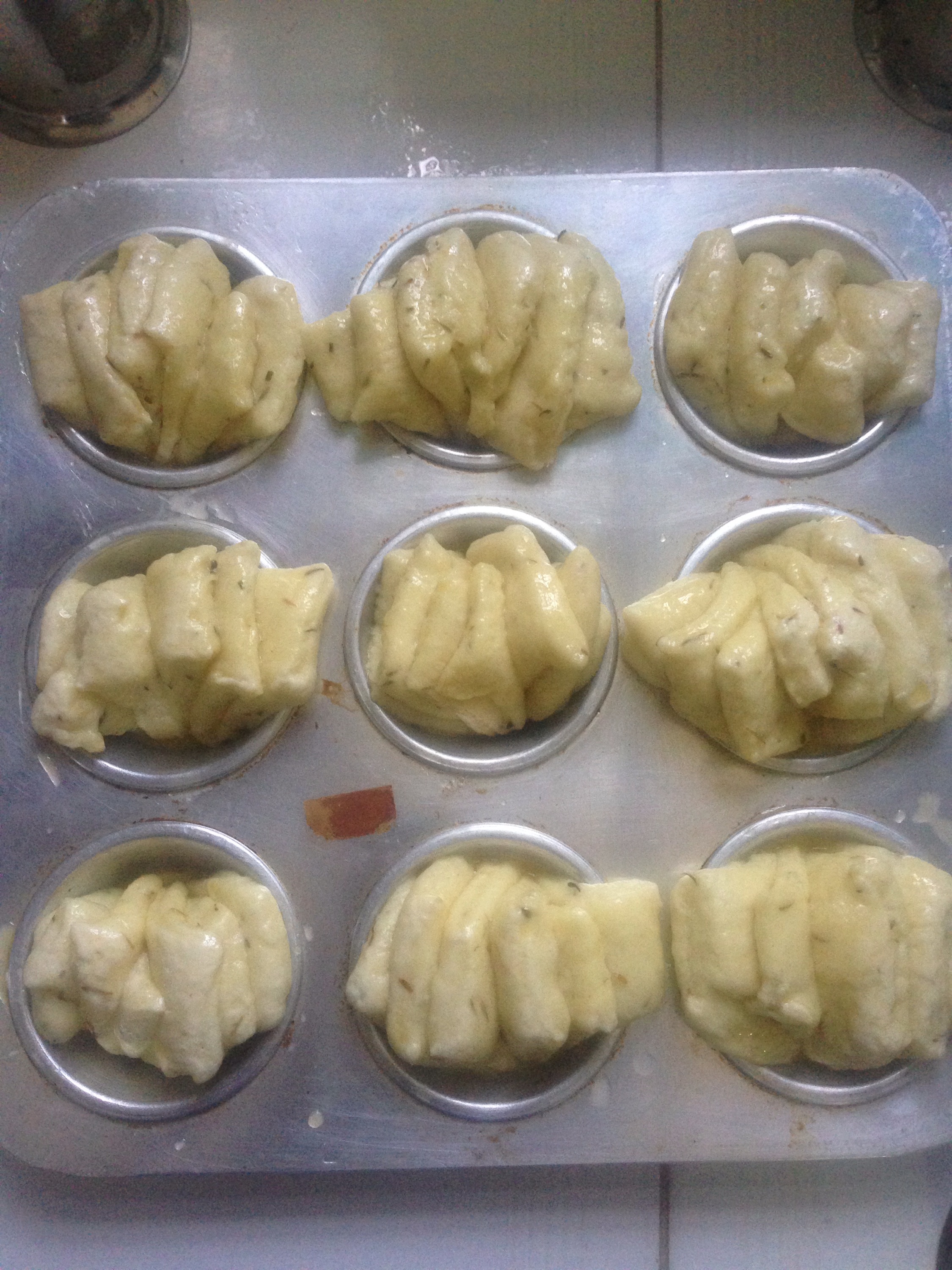 2. This recipe can make 12 rolls. But I was in a hurry and I have a 9 piece muffin tray. So I adjusted to have only 9 fantails.