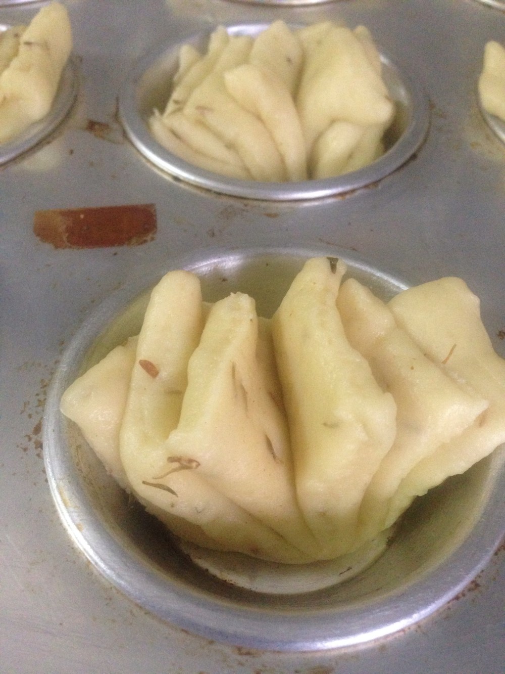 Very interesting way of making this bread. Loved the flaky bread in the muffin cups.