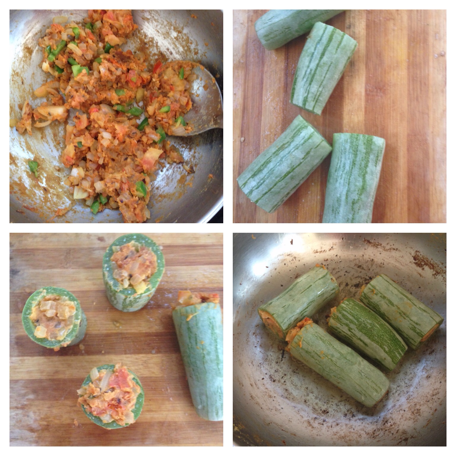 • Stuff the snake gourd with the vegetable filling