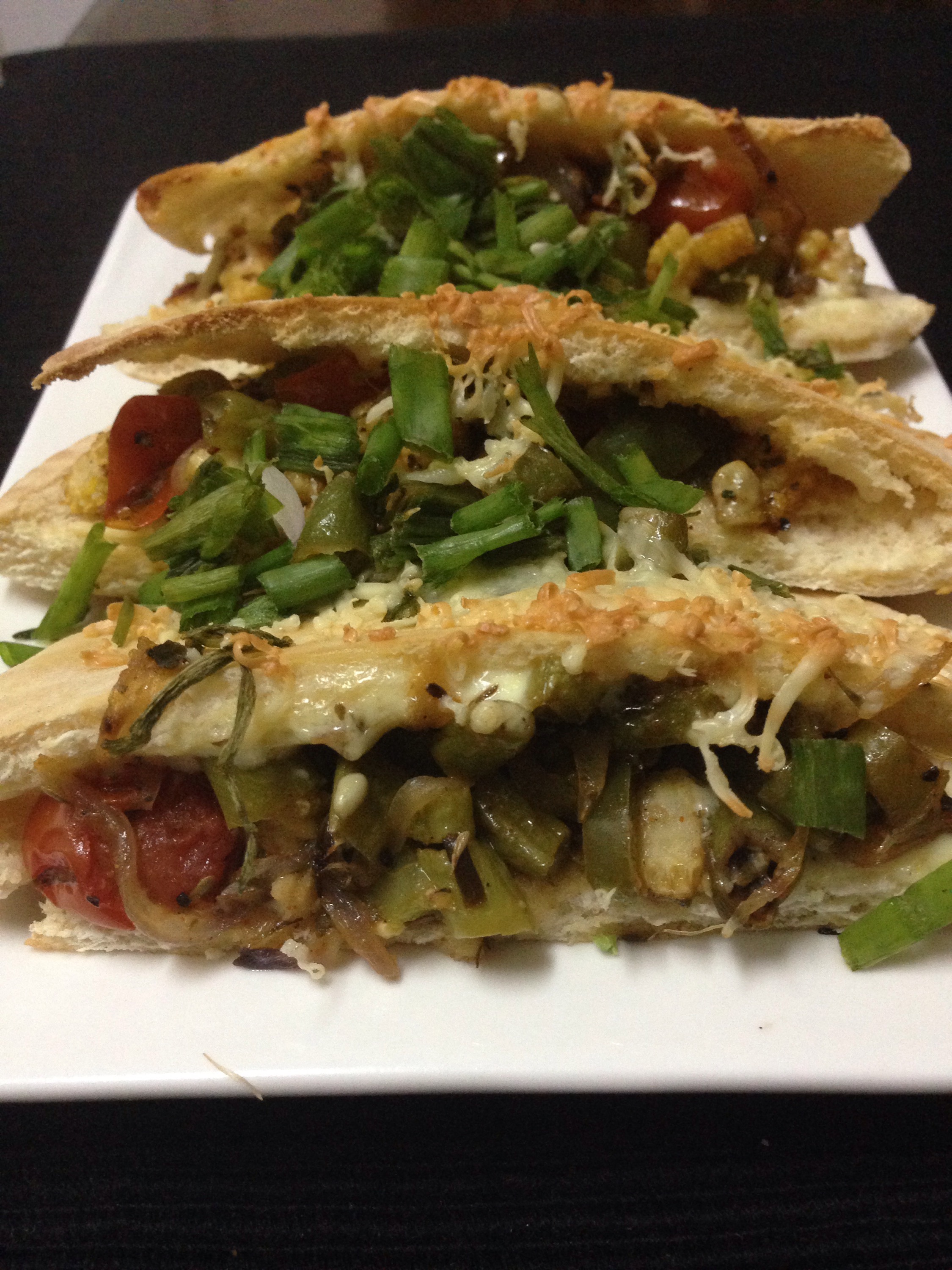 Great dish. I usually use the veges raw – onion, bell peppers, carrot, cucumber, lettuce, tomato, spring onions, tofu etc. Then use hummus. No baking, no cheese. 🙂
