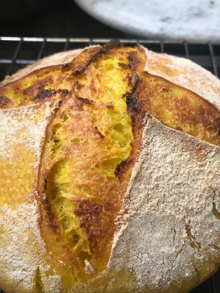 A bright and flavourful loaf made with sourdough starter and a dash of turmeric