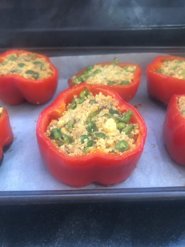 Arrange the capsicums on a baking tray and bake for around 20 minutes.
