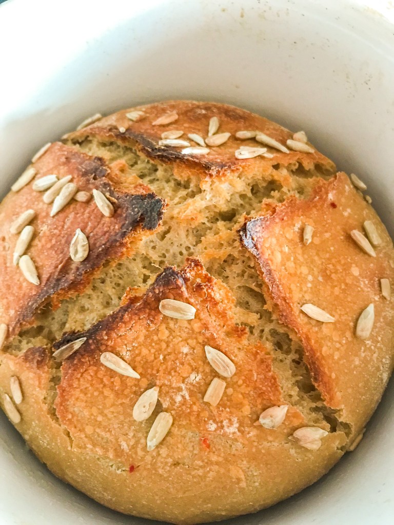 A beautiful sourdough boule with pumpkin seeds that can be ideal for breakfast, snack or dinner